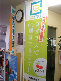 以前から準備を進めておりました、エコガラス「さくらんぼ」のぼりが完成。さっ