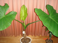 我が家のFASの家での出来事。観葉植物「クワズイモ」の真ん中に、また新葉が
