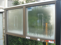 ▼朝靄の中での、バイオクリーンペアガラスに異変が!!!