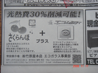 今月から、朝日新聞への広告掲載として、エコガラス「さくらんぼ」+温度差解消