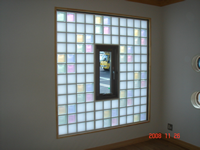 ご覧にように、内部からガラスブロックの色は、外部から見たものとは、まるで、