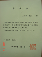 山形県知事からの「山形県地球温暖化防止活動推進員」の委嘱状が届きました。