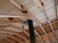 富士高原研修所の天井部分をご覧下さい。構造体としての、木部ジョイント部分を