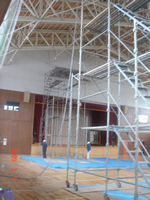 ▼高さ10mの、ローリング足場を2基設置!