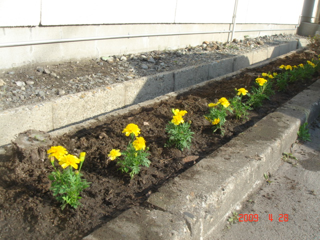 今朝会社に、黄色い春花を植えました。一緒にひまわりとコスモスの種も植えました。