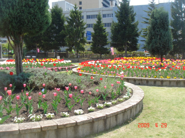 2、3日前まではつぼみだった文翔館のチューリップが咲いていました。