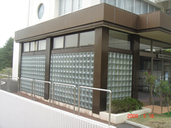 仙台白百合女子大のガラスブロックに、光熱フィルターの吹きつけを行ないました。
