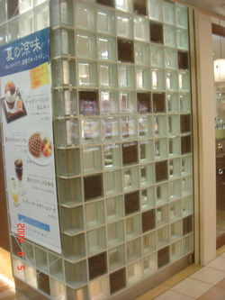 ある、有名百貨店の店内コーヒーショップでの画像です。ガラスブロックにコーヒ