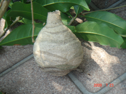 これは何?トックリを逆さにしたような、蜂の巣!どうやらスズメ蜂の初期(作り