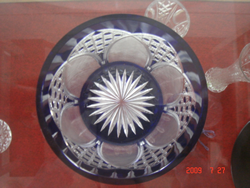 花器の上部から覗いてみると、中心部分のカット技法と、周囲の模様が、バランス