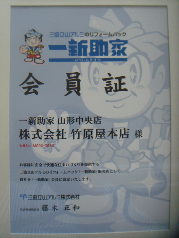 「一新助家」いっしんたすけ山形中央店!会員証を頂きました。お客様に快適な住