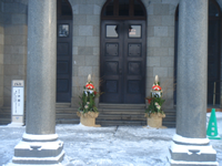 文翔館の正面に、新春に相応しい「大きな門松」を発見!しかしどうやら開館予定