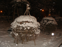 庭木のようなものですが、「どうたんツツジ」に綿帽子を被せたような姿も、なか