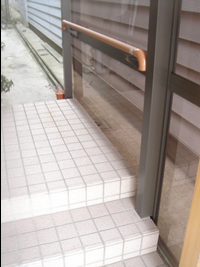 階段部分には、ご覧のように、お年寄りでも楽々歩けるよう、手摺を設けました。