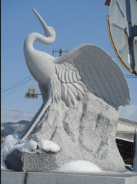 南陽市の宮内駅前に「鶴の石像」があります。この町は、豊かな自然に恵まれた、