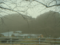 何かおかしいと思ったら、景色がボーッ・・・・・・近くの山に霞がかかった状態