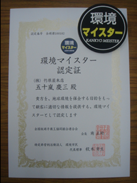 ▼「環境マイスター認定証!」