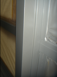 アルミサッシ表面の下地処理が終わったら、エポキシ樹脂塗料で下塗りを行ないま