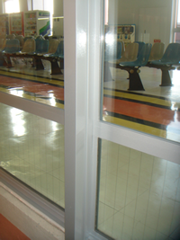 室内プールの腐食したアルミサッシが、ご覧のように見事に蘇りました。表面処理