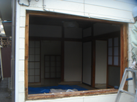 イディング材を、上部から貼り付けた建物です。雨漏りがひどくてアルミサッシの