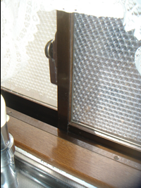 ご覧のように、ガラス面に「プチプチシート」が貼ってあります。結露対策などで