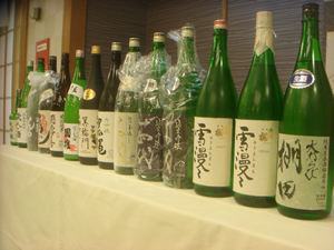 某ゼネコンさんの、東北6県対抗ゴルフコンペの前夜、ご覧のように各県から銘酒