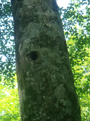 ブナの木に丸い穴が開いています!これは果たして何の穴?「白い森」の案内人に
