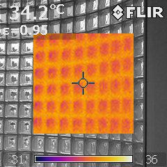 を計測してみると、34.2℃でした。外部面温度が43.6℃ですから温度差が