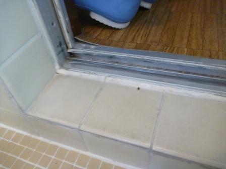 ご覧のように、浴室折り戸の下枠にもガタツキが見受けられ、開口部全体の、入れ