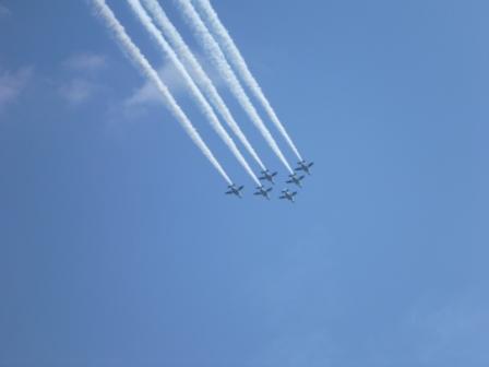 炎天下気温約34℃、松島基地航空祭に参加、ブルーインパルス訓練飛行を見学し