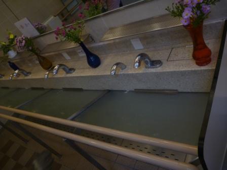よく見ると、安全対策の手すりガードに囲まれ、ガラスプレートが水切りの役目を