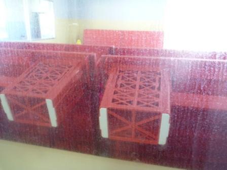温水プールの窓ガラスには、室内の塩素による汚れが付着し、ご覧のように鱗状痕