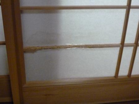雪見障子の横桟が、ご覧のように何者かに・・・・犯人はワンちゃんだそうです。