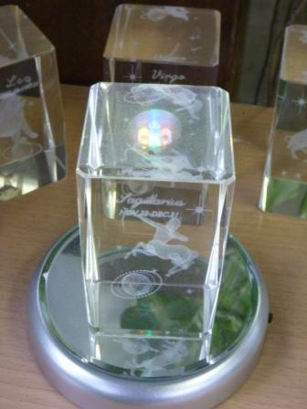 ガラス置物の下部架台にはLED照明が埋め込んであり、時間の経過と共に何色か