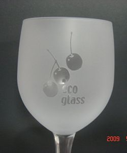 ブラスト調のグラスに、絵柄文字をクリアーに浮き上がるように、仕上げてみると