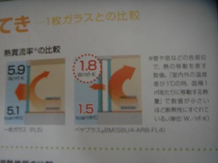 数値が小さいほど断熱性能に優れています。「5ミリ厚の1枚ガラス」とエコガラ