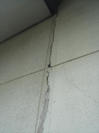 既存モルタル壁面に新たな亀裂が入り、横雨などの影響で内部に雨水が入り込みが