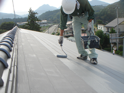 ▼屋根部へのガイナ塗装!