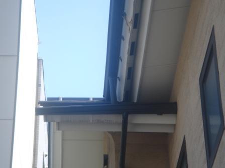 屋根の雨樋が雪害の影響でしょうか、ご覧のように片方に傾斜してしまいました。