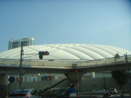 本郷通りから水道橋方面へ抜けて信号待ち、正面にはドームの屋根が見えます。こ