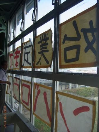 措置を行なったとのこと。窓ガラスには、「始業式までガンバロウ」の文字が表示