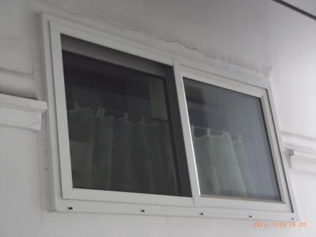 壁面をくりぬいて開口部に窓を設置しましたが、震災の影響で周囲に大きくヒビが