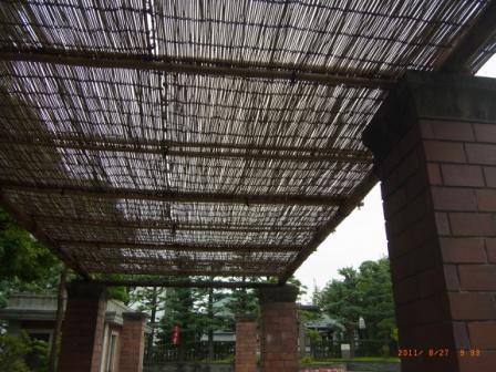 文翔館西側部分、円形植え込み花壇脇にある「パーゴラ」が新調され、天井部分の