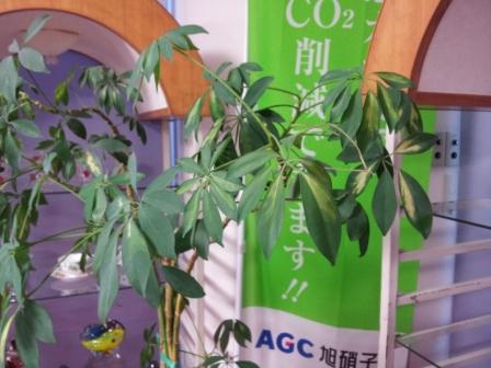 エアコンの吹き出し口から、ダイレクトに温風が当たり、観葉植物の葉がシワシワ