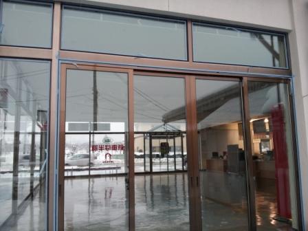 アルミ方立て部分を活かして、引戸枠を取り付けます。その後、建具を吊りこんで