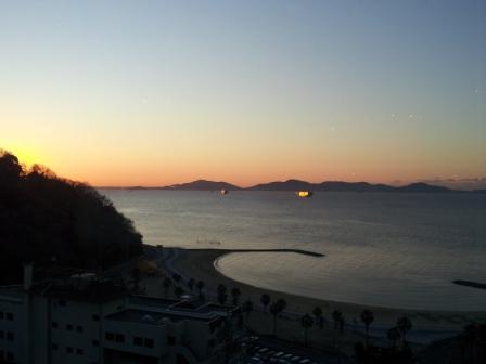 三河湾の絶景を眺めながら、西浦マリンハーバーを望みます。日の出時間は7時頃