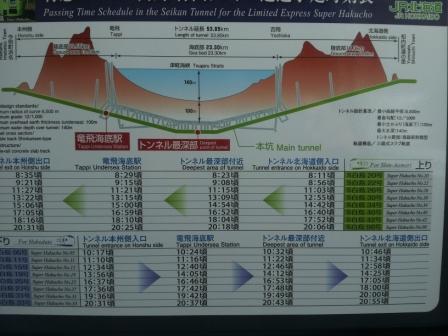 深さは、海面から240mあります。トンネル延長約54kmもあり、途中照明で