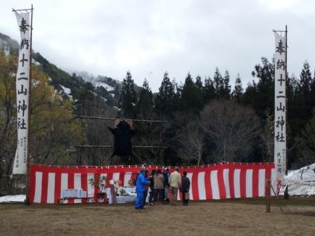 4日に、「熊まつり」を開催しています。猟の収穫を山の神に感謝し、射止めた熊
