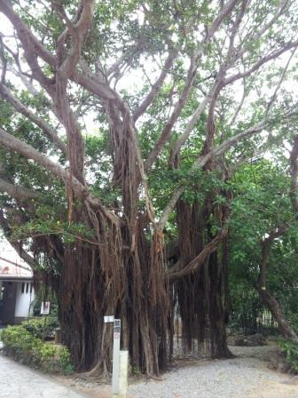 伝説の「ひめゆりの塔」入口に「ガジュマル」の大木を見つけました。妖精が棲み