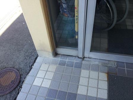 冬場にエントランス付近に、凍結防止の融雪剤を散布、その後赤錆が発生して周囲